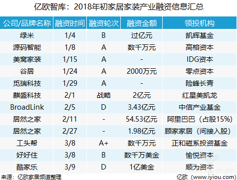 億歐智庫:2018年初家居家裝產(chǎn)業(yè)融資信息