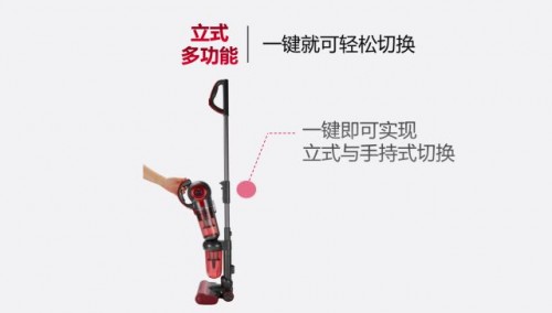 立式地面吸塵模式轉(zhuǎn)手持模式只需要按一鍵就可切換,無需彎腰把機(jī)器放到地上拆裝。