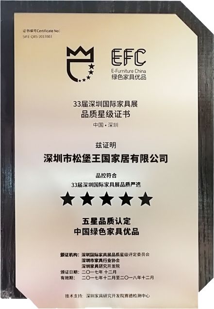A:“品質(zhì)星級(jí)評(píng)定”工作的開展,對(duì)企業(yè)品牌的提升有著十分重大的意義,它是企業(yè)衡量品質(zhì)的一個(gè)標(biāo)桿,在鼓勵(lì)企業(yè)不斷提升品質(zhì)的同時(shí),降低了消費(fèi)者的選擇成本、提升了消費(fèi)者的使用體驗(yàn),有效地促進(jìn)了中國(guó)家具產(chǎn)業(yè)品質(zhì)生態(tài)鏈的形成。松堡王國(guó)作為“星級(jí)評(píng)定”的”五星+優(yōu)品”最高榮譽(yù)獲證企業(yè),將持續(xù)關(guān)注青少年兒童的成長(zhǎng),以更高的品質(zhì)標(biāo)準(zhǔn)嚴(yán)格要求自己。