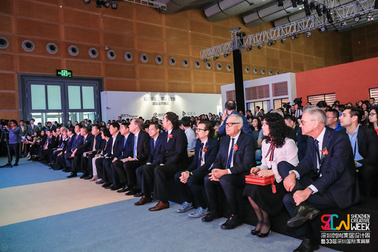 出席此次開幕式的嘉賓有:芬蘭駐中國(guó)大使館大使肅海嵐Jarno Syrjälä、瑞士駐廣州總領(lǐng)事館副總領(lǐng)事白睿 René Bänziger、設(shè)計(jì)互聯(lián) | 海上世界文化藝術(shù)中心館長(zhǎng)奧雷•伯曼Ole Bouman、中國(guó)中小企業(yè)協(xié)會(huì)會(huì)長(zhǎng)李子彬、深圳市經(jīng)信委主任劉勝、深圳市時(shí)尚創(chuàng)意產(chǎn)業(yè)聯(lián)盟主席侯克鵬、深圳市家具行業(yè)協(xié)會(huì)會(huì)長(zhǎng)左右家私有限公司董事長(zhǎng)黃華堃、深圳市家具行業(yè)協(xié)會(huì)執(zhí)行會(huì)長(zhǎng)仁豪家具發(fā)展有限公司董事長(zhǎng)尤國(guó)忠、President of Angelo Vasino Spa Renato Vasino、BP&P創(chuàng)始合伙人Luca Sabino Petrone、AETEX 亞太區(qū)推廣經(jīng)理 Maria Elena Angell、深圳家具研發(fā)院院長(zhǎng)許柏鳴、漾美家居(天津)有限公司董事長(zhǎng)呂東丹等。