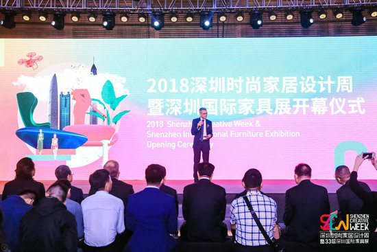 中國(guó)中小企業(yè)協(xié)會(huì)會(huì)長(zhǎng)李子彬宣布2018深圳時(shí)尚家居設(shè)計(jì)周正式開幕
