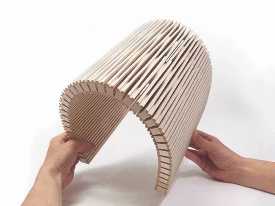 杜克塔dukta——柔性木材,一種可以使木材變“柔軟”的獨(dú)特的國(guó)際性專利技術(shù),通過(guò)專門的切割,原本靜態(tài)的木材可以獲得類似紡織品一樣的柔性特點(diǎn),以此獲得廣泛的應(yīng)用范圍。