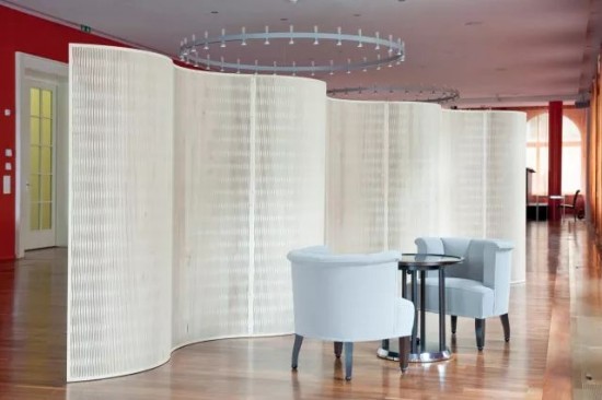 這種柔韌的杜克塔板材能夠設(shè)計(jì)出獨(dú)特的具有流線型的木制家具和燈具,穿孔的木質(zhì)杜克塔材料能夠輕松地建構(gòu)出圓形木質(zhì)家具、伸縮木門和百葉窗,與此同時(shí)杜克塔切割面板還可以用作擱板和掛鉤的懸掛網(wǎng)格。