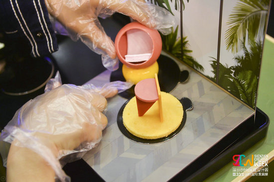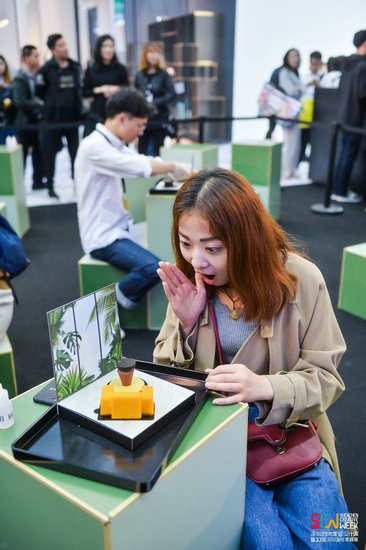 大城小食,展位上熙熙攘攘的人群都想嘗一口深圳。臺(tái)灣知名設(shè)計(jì)師曾熙凱聯(lián)合策劃“The Food & City•大城小食”創(chuàng)意設(shè)計(jì),用食物設(shè)計(jì)的方式向世界傳達(dá)深圳故事、深圳文化和深圳精神,讓世界看到深圳的無(wú)限創(chuàng)意和活力。以食物做成家具部件,以餐盤(pán)作為房間地板,觀眾可以現(xiàn)場(chǎng)將各種部件組合,自由創(chuàng)造出屬于自己的家具,詮釋自我風(fēng)格,最后一口一口吃掉。