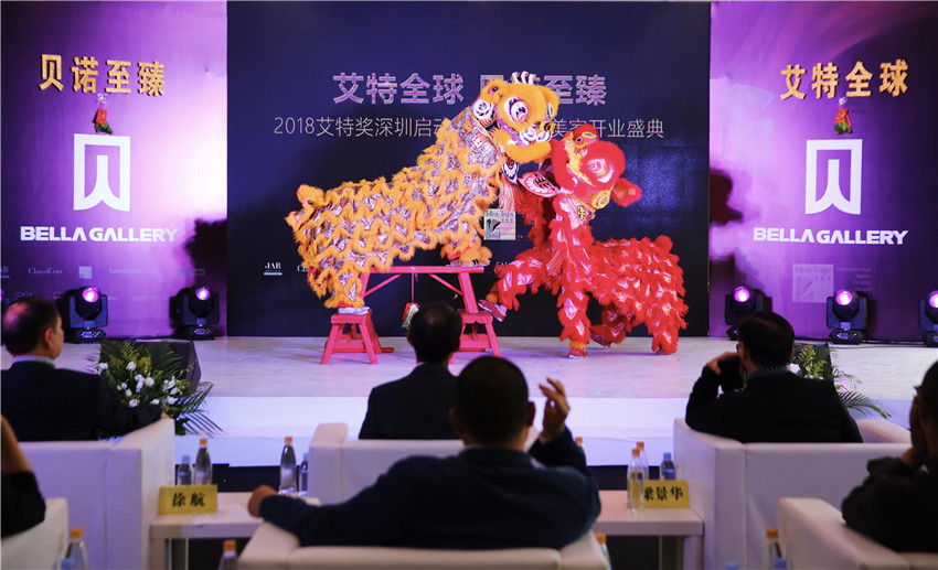開業(yè)剪彩前,中國傳統(tǒng)的象征吉祥如意的雄獅帶來精彩的“雄獅采青”表演。深圳市貝諾美家家居設(shè)計(jì)有限公司董事長(zhǎng)欒女士,艾特獎(jiǎng)組委會(huì)秘書長(zhǎng)、A963設(shè)計(jì)網(wǎng)副總裁何光會(huì)先生,共同為雄獅點(diǎn)睛,左點(diǎn)金,右點(diǎn)銀,中間點(diǎn)天下太平,寓意Bella Gallery從此接財(cái)納福,財(cái)源廣進(jìn)!