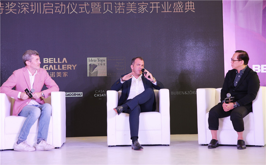 深圳市人大原教科文委副主任羅敏女士,貝諾美家董事長(zhǎng)欒女士,艾特獎(jiǎng)組委會(huì)秘書長(zhǎng)、A963設(shè)計(jì)網(wǎng)副總裁何光會(huì)先生,鵬瑞集團(tuán)董事長(zhǎng)徐航先生,P A L Design Group 創(chuàng)始人及首席設(shè)計(jì)師梁景華先生,JAB家具總經(jīng)理Frank Rethman先生,CASA CASATI聯(lián)合創(chuàng)始人Emanuele Genulizzi先生共同執(zhí)起金剪,開啟Bella Gallery開業(yè)剪彩儀式。Bella Gallery在大家的祝福和見證下,揚(yáng)帆起航、筑夢(mèng)未來。共同攜手,共同期待,締造品質(zhì)生活藝術(shù)家,助力中國設(shè)計(jì)走向世界,走向未來!