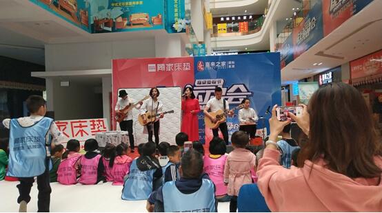 在床上運(yùn)動(dòng)會(huì)現(xiàn)場(chǎng),床上音樂節(jié)吸引眾多孩子的目光,和著歌曲節(jié)奏,孩子們?cè)诖蟠矇|上跳躍、舞動(dòng),顧家床墊變成了他們自由發(fā)揮的大舞臺(tái)。