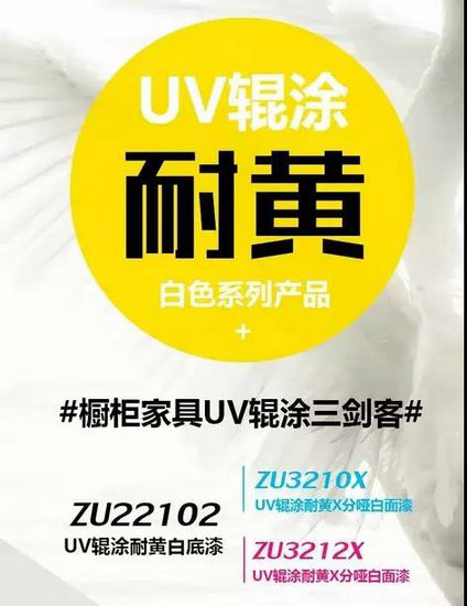 展辰針對(duì)櫥柜的防護(hù)性能,在櫥柜家具研發(fā)出新型功能環(huán)保產(chǎn)品——超耐黃,經(jīng)久不污三劍客: UV輥涂耐黃白底漆、UV輥涂耐黃X分啞白面漆ZU3210X與ZU3212X,為櫥柜家具解決易受潮變色、易受油污影響變色等防護(hù)問題。