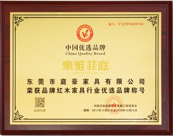 2017年12月25日,豪雅菲庭被CCTV《發(fā)現(xiàn)品牌》欄目組籌辦的中國優(yōu)選品牌促進(jìn)發(fā)展工程評選為“紅木家具行業(yè)的優(yōu)選品牌”。在層層苛刻的考察與評選下,豪雅菲庭用工匠精神,感動了評委會,并贏得了評委會的一致好評。