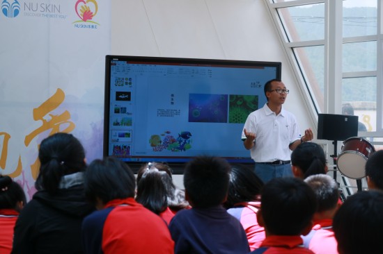 ▲ 昆明十中老師張盛參與課堂與孩子們互動