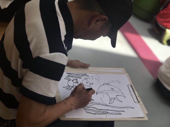 主辦方發(fā)言結(jié)束后,美學課堂也正式拉開了序幕!第一堂課的主題是“臉的創(chuàng)作”,支教老師靳如興鼓勵孩子們畫出有特點的表情,并從中感受創(chuàng)作的快樂。
