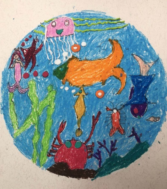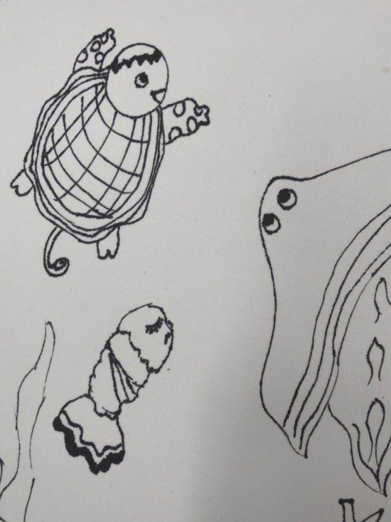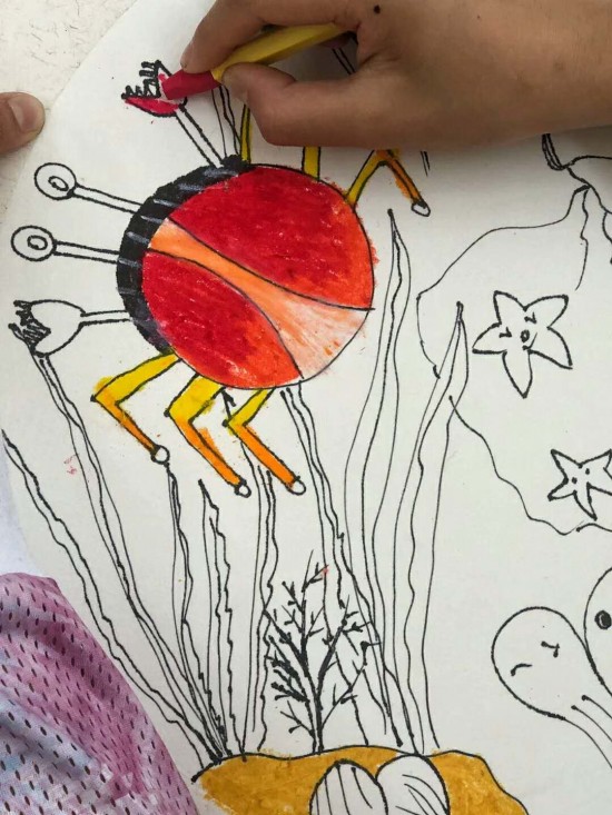 第二堂課的創(chuàng)作主題是“夢幻海洋”,支教老師李凌鼓勵孩子們放飛想象,描繪他們眼中的大海,培養(yǎng)孩子們愛護海洋,保護動物的觀念。