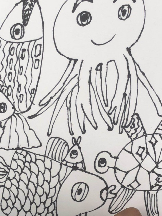 經(jīng)過支教老師的講解和其他幾位老師的同臺傾授以及嘉賓們的輔導創(chuàng)作,一小時后,孩子們的萬千海洋世界的美術(shù)作品就誕生了!現(xiàn)場還有學生家長也跟著認真描摹起來。