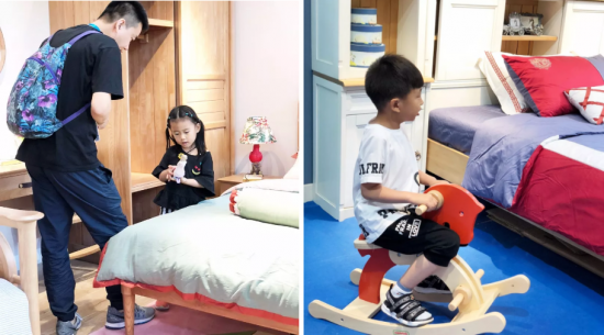 在北歐木語,抽屜內(nèi)置分區(qū)設計、動物形狀的桌椅設計、生活元素的柜面設計、床頭可更換組合設計、多邊形的組合書桌設計等走心設計,將人與自然的奇思妙想發(fā)揮無盡,讓每個孩子都能在這里發(fā)現(xiàn)快樂。顏色、尺寸、功能的自由選擇,也成為一大亮點。