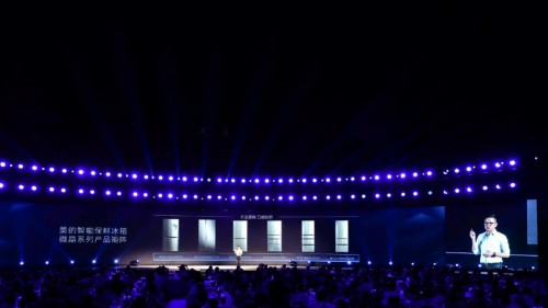 美的冰箱事業(yè)部國(guó)內(nèi)營(yíng)銷公司總經(jīng)理王超發(fā)布美的智能冰箱微晶系列并公布售價(jià)
