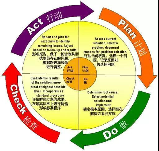 PDCA(即計劃(plan)、執(zhí)行(do)、檢查(check)、行動(Action))是美國質(zhì)量管理專家休哈特博士首先提出的,由戴明博士采納、宣傳,并獲得普及,所以又稱戴明環(huán)。