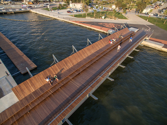 位于土耳其伊茲密爾城區(qū)的“Bostanl?人行天橋和日落休息區(qū)”是由Studio Evren Ba?bu?建筑工作室使用熱處理的美國白蠟?zāi)景逯瞥?。簡潔流暢的木紋表面線條讓游客更加接近夕陽和大海。Studio Evren Ba?bu?建筑工作室創(chuàng)始人兼合伙人Evren Ba?bu?先生表示:“經(jīng)過熱處理的美國白蠟?zāi)狙b飾面因其自然紋理有著親和的觸感。作為設(shè)計(jì)師,我們堅(jiān)信木材是該項(xiàng)目的最好選擇,這也與我們的設(shè)計(jì)理念不謀而合。該項(xiàng)目詮釋了自然、獨(dú)立、質(zhì)樸、包容的完美融合,如今已成為最受大眾喜愛的景點(diǎn)之一。能夠參與這個(gè)開創(chuàng)性的項(xiàng)目,我們感到非常自豪!”