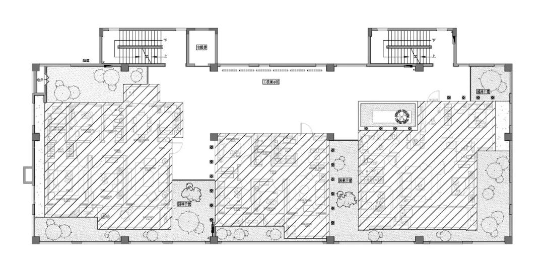 整體空間大氣朗闊、沉穩(wěn)內(nèi)斂,盡顯中式傳統(tǒng)高門大戶的典雅之美。設(shè)計通過自然的木制材料營造出別具風(fēng)范的氣度美學(xué),典重而謙和,高雅而安詳。左右兩側(cè)的木柵墻體以嚴(yán)謹(jǐn)?shù)哪?shù)排列布局,疏密有致,與天花的木制架構(gòu)融為一體,展現(xiàn)鮮明的構(gòu)圖感和傳統(tǒng)建筑結(jié)構(gòu)美學(xué)。