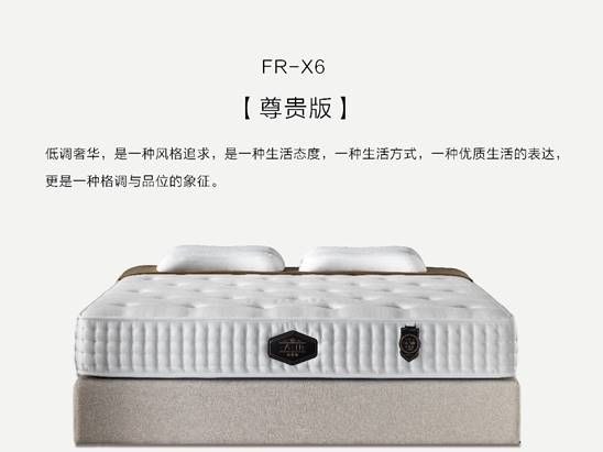 核心提示:致享FR-X6床墊,開啟床墊新篇章低調(diào)奢華,是一種風(fēng)格的追求,也是一種生活態(tài)度,一種具有高貴品質(zhì)的優(yōu)越品位的生活方式。