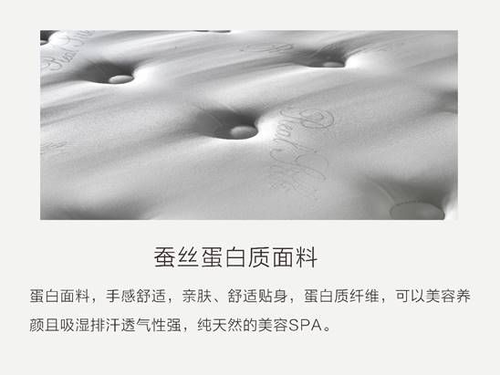 高生活品質(zhì)是個(gè)人品格與智慧的一種反映,它講求個(gè)人的身體與心靈達(dá)到一種境界,對(duì)睡眠品質(zhì)的追求同樣如此,來源于材料的選擇與精湛的工藝,二者缺一不可,土耳其進(jìn)口的蠶絲蛋白面料,不僅柔軟、透氣、還能美容養(yǎng)顏,進(jìn)關(guān)時(shí)間較長(zhǎng),實(shí)在來之不易,以及意大利進(jìn)口天然乳膠,順應(yīng)身體、回彈壓力,兩種純進(jìn)口的原材料都是彌足珍貴,更是品質(zhì)追求的象征,凝膠記憶棉,冷卻性能、透氣性能、放松身心,而獨(dú)立袋裝彈簧,超級(jí)靜音·互不干擾,每一種材料都有一種相同的特性,環(huán)保,每一種材料都有一個(gè)相同的目的,提升舒適性,每一種材料都有一種相同的宗旨,健康睡眠,歸根究底好的材料才能保證好的睡眠享受高品質(zhì)的生活。