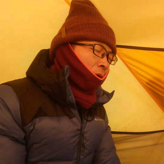 由于這段路程大多是暴露的山脊,一旦起風,氣溫便會驟降,瞬間就會帶走人體表面的任何熱量,也會給攀爬帶來更大的困難和風險。2號下午,當黃總快要接近C1營地時,大風突起,氣溫驟降至-10度以下,身體瞬間失溫,十指片刻間便沒有了知覺。幾分鐘后,即便鉆進帳篷,窩在抗零下15度的睡袋里仍然凍得直打哆嗦。5600米海拔的寒冷和高反的肆虐,到了晚上會更加變本加厲,一方面寒冷迫切需要你補充能量和注意休息,另一方面高反又讓你吃不下任何東西,并且無法入睡。所有的一切,都在無情地消磨著人的意志。