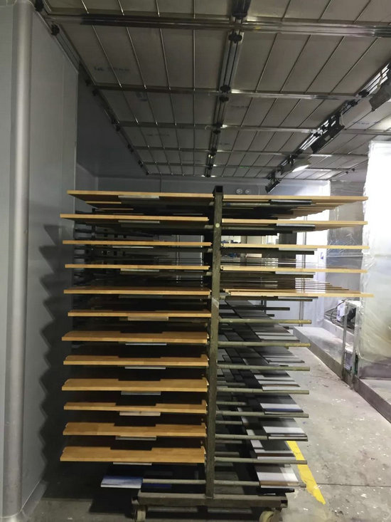 衛(wèi)浴家具企業(yè)生產線基本是機械化涂裝,生產工藝輥涂UV底/輥涂UV面、輥涂UV底/噴涂PU面、水性底/水性面等。家具企業(yè)需要根據自身產品的需求進行生產工藝的量身打造,如展辰在與箭牌衛(wèi)浴的合作中,針對箭牌衛(wèi)浴需求提出了輥涂UV底/輥涂UV面的產品及生產工藝,針對恒潔衛(wèi)浴對產品光澤以及產品表面效果要求較高的需求,提出了輥涂UV底/噴涂PU面的產品和生產工藝等。