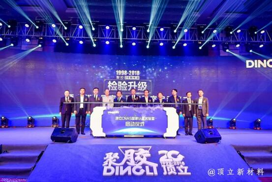 2018年10月26日,膠粘劑行業(yè)領(lǐng)導(dǎo)品牌頂立二十周年慶之際,聚“膠”——頂立品牌戰(zhàn)略暨2018新品發(fā)布會在浙江臺州旗隆萬豪酒店圓滿舉行。在臨海市副市長陳福清、臨沂市林業(yè)局副局長陳志坤、郯城經(jīng)濟(jì)開發(fā)區(qū)書記藺勝運、偉星新材董事長金紅陽、沿江鎮(zhèn)書記金振波、江蘇省江南大學(xué)副校長顧正彪、蘇州大學(xué)科學(xué)技術(shù)研究部科技成果轉(zhuǎn)化處處長龔學(xué)鋒、南京林業(yè)大學(xué)家具與工業(yè)設(shè)計學(xué)院副院長徐偉、中國膠粘劑和膠粘帶工業(yè)協(xié)會副理事長兼秘書長楊栩、中國木門窗專業(yè)委員會會長張國林、中國建筑業(yè)協(xié)會材料分會會長劉洪祥、中國國際家居產(chǎn)業(yè)發(fā)展論壇主席張仁、全國工商聯(lián)家具裝飾業(yè)商會秘書長張仁江、廣東潤成創(chuàng)展董事長關(guān)潤開、鑫迪木門副總裁張志華等行業(yè)領(lǐng)導(dǎo),以及數(shù)十家行業(yè)主流媒體和眾多合作伙伴企業(yè)代表的見證下,頂立發(fā)布了品牌新戰(zhàn)略,推出了2018新產(chǎn)品,啟動了山東智能制造新工廠,并建立了頂立CNAS國家認(rèn)可實驗室,與蘇州大學(xué)共建新材料研發(fā)中心,以一系列行業(yè)重磅之舉,在二十周歲之際,以青春勃發(fā)的姿態(tài)開啟品牌新征程,也以創(chuàng)新之舉引領(lǐng)著行業(yè)發(fā)展的新高度。