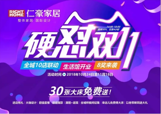 核心提示:今年的“雙11”,作為國內(nèi)整體家居新定制領(lǐng)軍企業(yè),仁豪家居推出了“硬懟雙11”的線下主題促銷,仁豪家居全城10店“直降50%,狂賣4小時”。