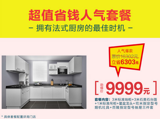 此外,司米櫥柜的年度人氣爆款櫥柜套餐——雙城也推出了雙11狂歡節(jié)9999元的驚爆價,套餐包括3米標(biāo)準(zhǔn)地柜、3米石英石臺面、1米標(biāo)準(zhǔn)吊柜、龍頭、水槽、司米煙機、司米灶具、2低1高百隆金屬騎馬一體抽,配套齊全,一經(jīng)入手立省6303元。除了櫥柜以及基本的廚電配置套餐外,此次司米櫥柜還推出了增值套餐,購買櫥柜滿3萬元,僅需加89元即可購買蒸箱或烤箱1臺。