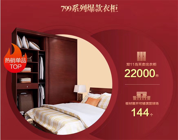 據(jù)索菲亞發(fā)布的數(shù)據(jù)顯示,雙十一當(dāng)天其銷售額達8.1億,位居天貓美家及定制衣柜類目第一名,下午15時25分即超越2017年雙十一總銷售額,銷量比去年增長44%。大家居強勢霸屏,799系列爆款衣柜賣出22000件,¥799+100㎡全屋定制搶購近30000件,超過16600人選購全品類,其中米蘭納木門新品銷量達10000樘,司米櫥柜銷量達4000延米,家居家品銷量超過10月總額。
