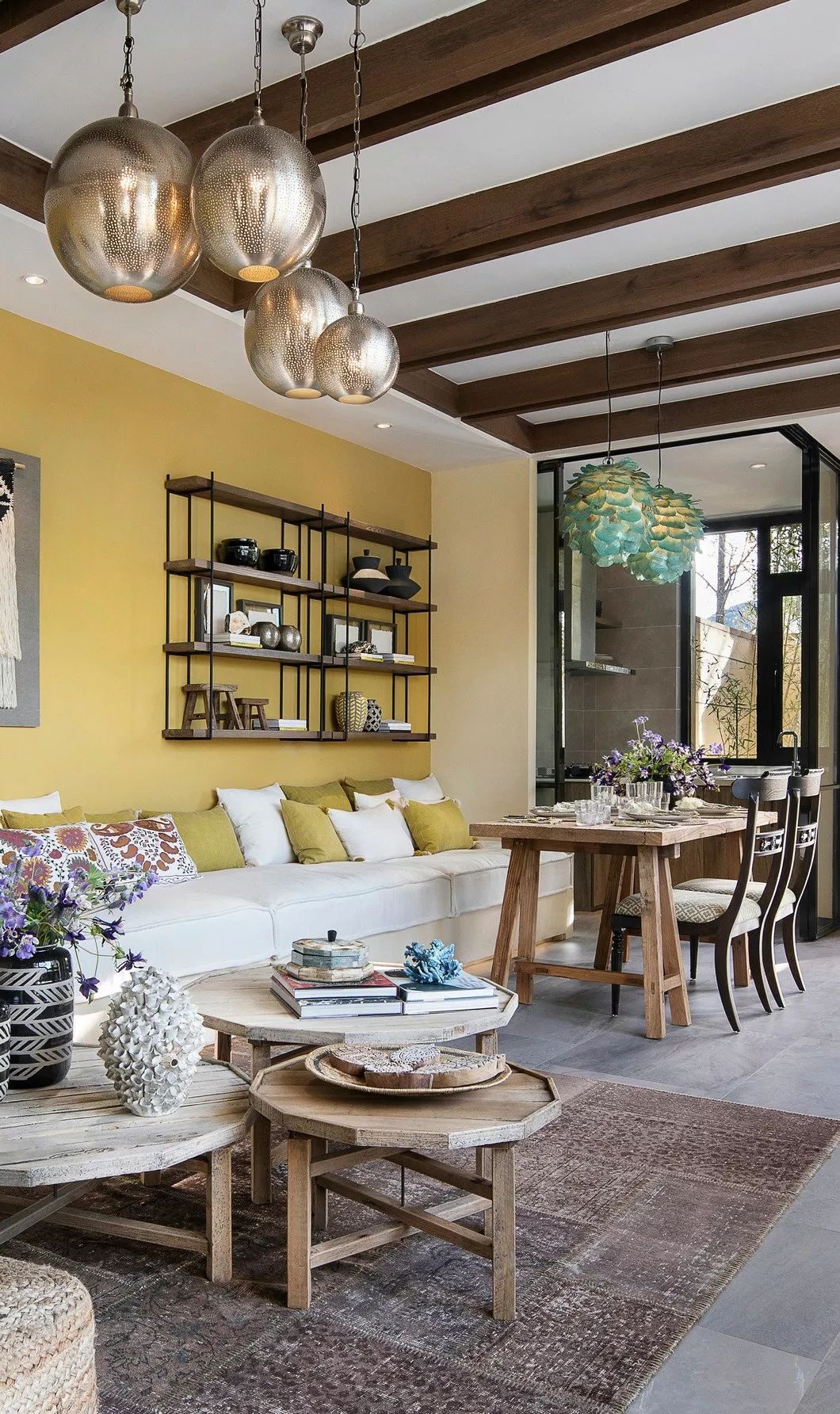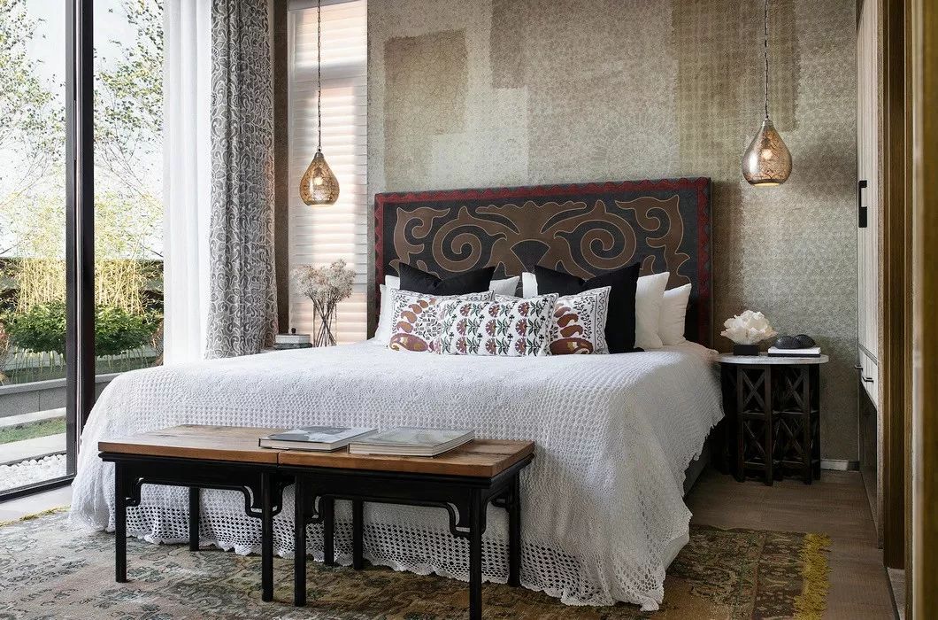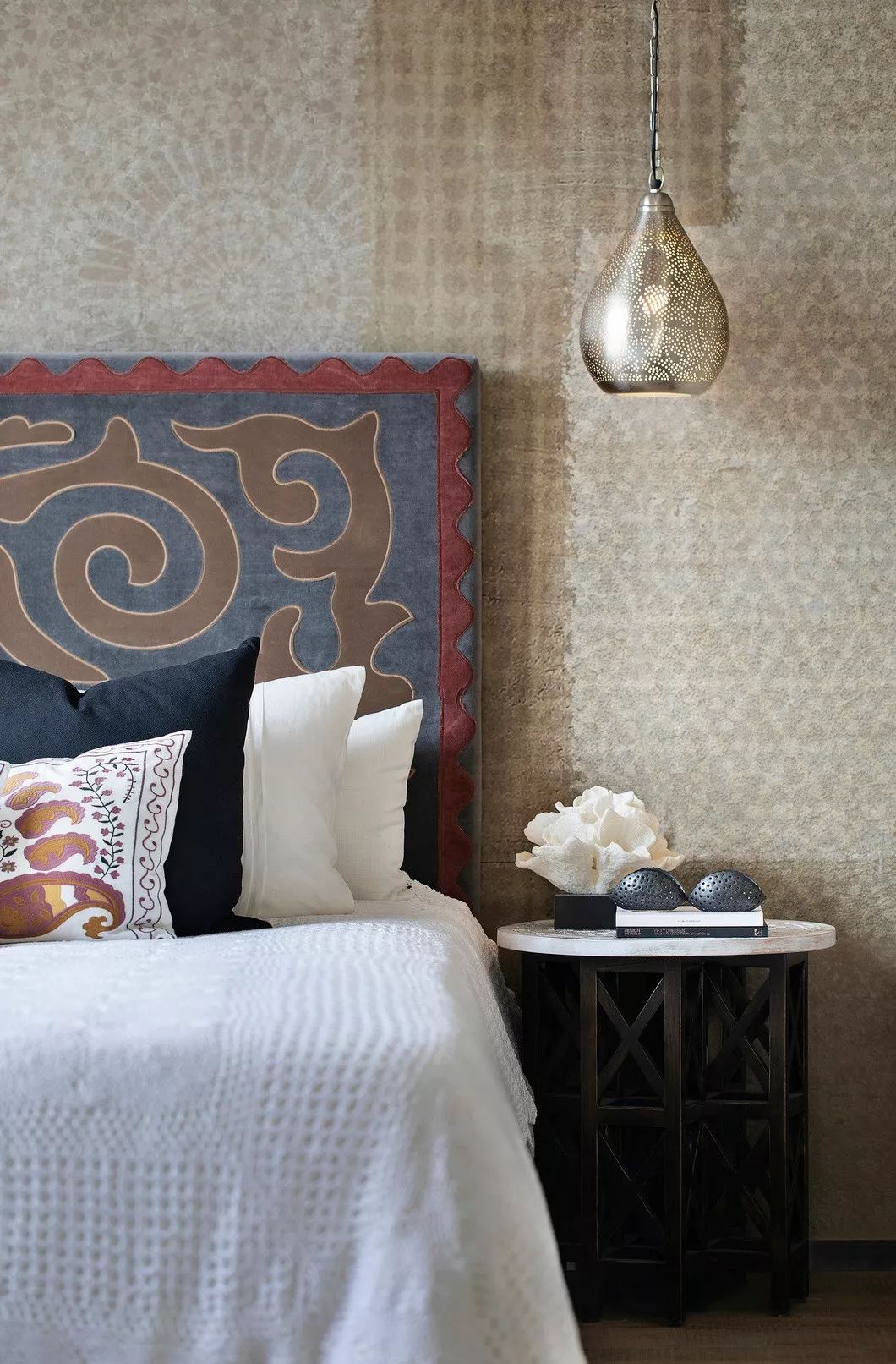 設(shè)計(jì)師通過北非設(shè)計(jì)元素如毛線編織成的掛畫飾品、紋樣新穎的花樽、民族風(fēng)情印花抱枕等,點(diǎn)染出空間異域夢(mèng)幻的光彩,同時(shí)因浸潤(rùn)著原木材質(zhì)的清氣,予人安心舒適體驗(yàn)。