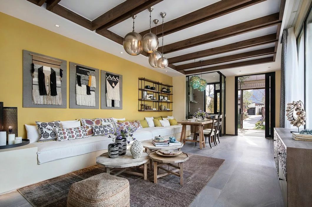 在陌上花開,望山而建的平層院子,可見豐寧山脈綿延起伏,山田花海肆意綻放,靜謐的小院,藏納了人們心里的詩和遠(yuǎn)方,一場(chǎng)關(guān)于幸福棲居的夢(mèng)。