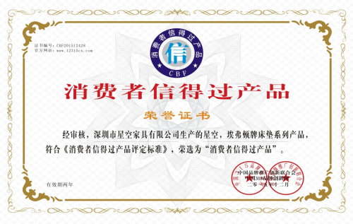 星空床墊榮獲《消費(fèi)者信得過產(chǎn)品》稱號(hào)