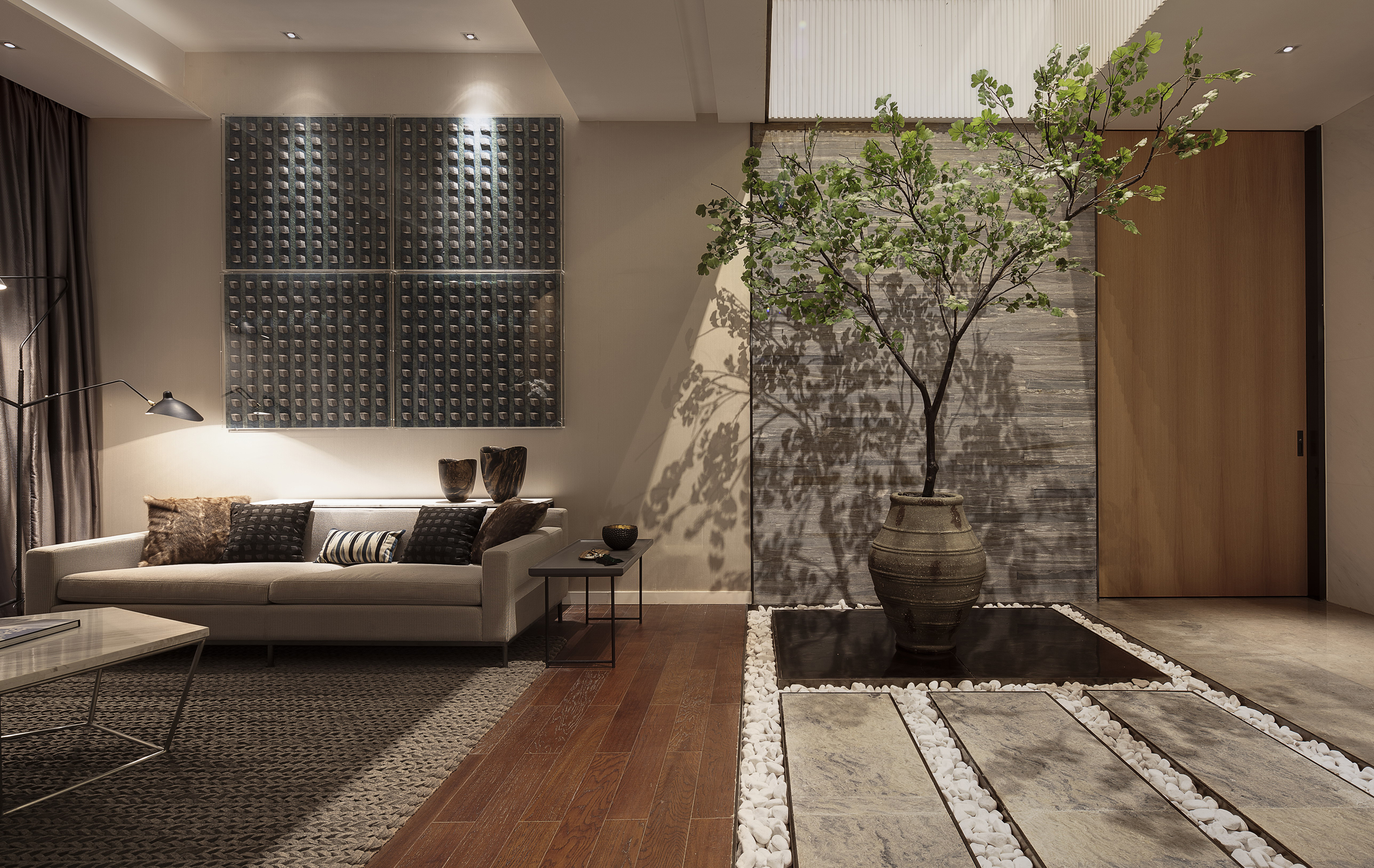 設(shè)計師匠心獨運地在當代的空間架構(gòu)中融入了鮮活的東方風情,半透的輕紗簾幕在微風中蕩漾搖曳,古意盎然的配件擺設(shè)安然靜置,風雅意蘊盡出。