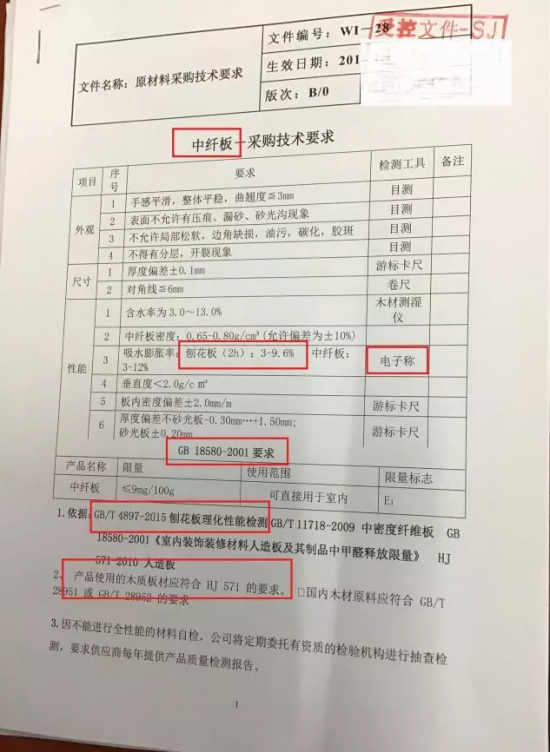 2. 采購技術要求未及時做更新。主要體現(xiàn)在執(zhí)行的相關標準早已過期,但是企業(yè)仍按舊標準要求在執(zhí)行采購。比如,人造板甲醛釋放量的國家強制性標準GB 18580已經(jīng)更新至2017版,并且標準內(nèi)容變更很大,已經(jīng)取消E2級別的要求,如果企業(yè)仍按舊標準要求進行采購,不符合國標要求的板材很有可能流入生產(chǎn)過程。