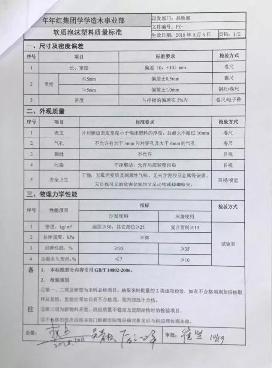 優(yōu)秀案例一:年年紅——軟質(zhì)泡沫塑料采購技術要求