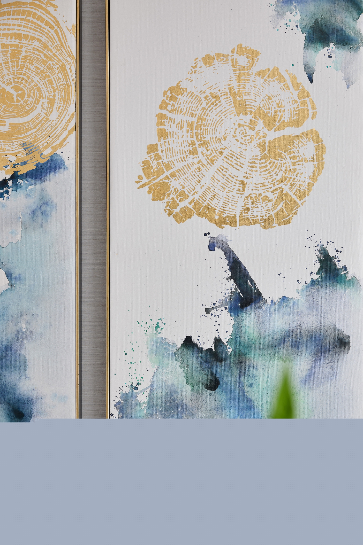 走入空間,可見水紋的柔美點(diǎn)染于軟包、畫飾、地毯等軟裝上,渲染出怡人舒適的空間氛圍。三扇大面積玻璃門窗,將四時(shí)風(fēng)光納入框景中,邀人坐看自然的生機(jī)、時(shí)間的足痕。