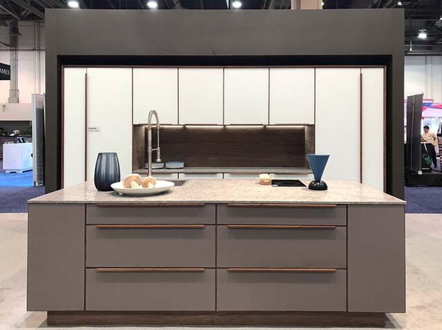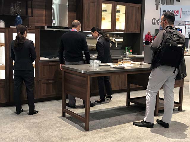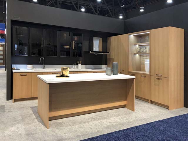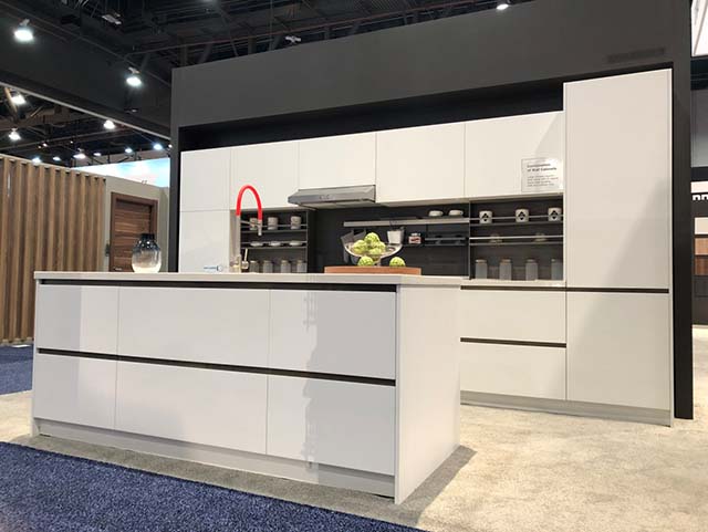 在海外市場定位為“簡約而不簡單的中高端歐式廚柜”的志邦家居的廚柜自2014年開啟美國市場業(yè)務后以來的第4年參展,超過往年幾十平方米的試水展位規(guī)模,今年在IBS展館搭建共計達到225平方米,是廚柜展區(qū)面積數(shù)一數(shù)二的企業(yè)。