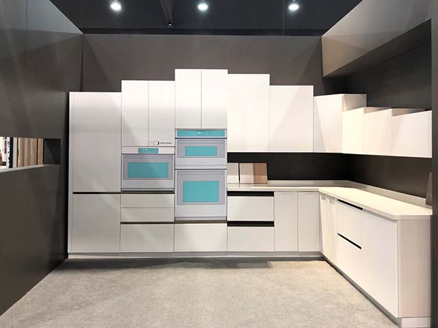 另外,志邦家居這次運往美國展會的實木邊框玻璃廚柜門實現(xiàn)了木與玻璃的完美結合,進一步的提高玻璃面板的安裝穩(wěn)定性,使其受力均勻;門型拼角圓滑無毛刺且不易開口,集安全、實用、美觀于一體。不僅其嚴謹?shù)墓に嚻焚|展示得到現(xiàn)場專業(yè)的觀眾的認可,尤其搭配的五金功能件及因此而形成的人性化功能變化更是引來眾多觀眾的駐足。