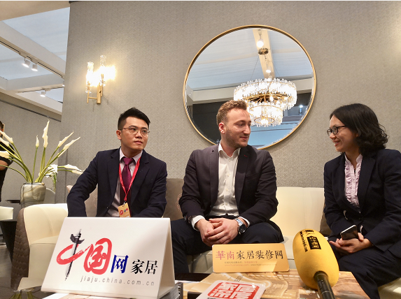 英國(guó)設(shè)計(jì)師Mr.Massimo(中間)接受媒體采訪