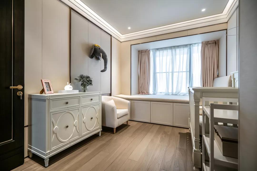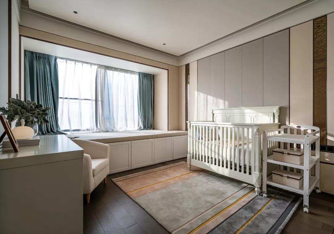 兩間嬰兒房以淡粉與水藍(lán)作為區(qū)隔,配備成對(duì)的嬰兒床、衣櫥,還有一件件童趣別致的玩具。在設(shè)計(jì)中,鴻藝源設(shè)計(jì)貫穿著對(duì)未來(lái)生活的考慮,為居住空間留有成長(zhǎng)與進(jìn)化的可能。嬰兒房及兒童娛樂(lè)室均在背景墻的設(shè)計(jì)上做了預(yù)留手法,隨著孩童的成長(zhǎng),家長(zhǎng)只需將家具進(jìn)行替換,無(wú)須進(jìn)行二次裝修。