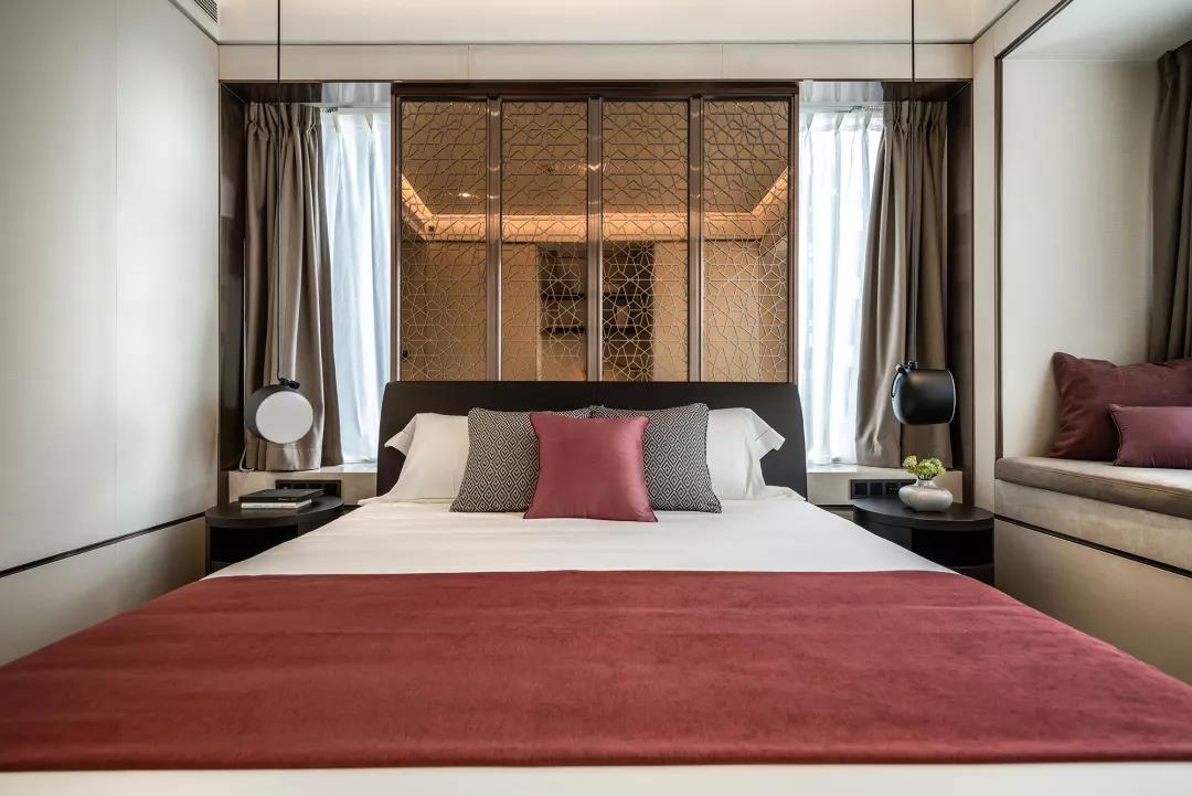 次臥兩面超寬窗臺(tái),納入朗闊無(wú)垠的好景,空間格調(diào)疏朗氣清。設(shè)計(jì)師發(fā)揮了創(chuàng)意想象,將一塊深色亞克力隔板做成床頭背景墻,巧妙利用空間之余,亦保留了空間尺度的敞闊感。
