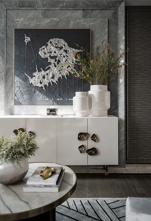 極簡(jiǎn)主義的過于理性化總是將空間的一切束之高閣,其中的情感與格調(diào)無法得到飽滿的表達(dá)。在設(shè)計(jì)師邦邦眼里,設(shè)計(jì)應(yīng)是自由的、多變的、有生命的。文化的底蘊(yùn)、自然的美學(xué)、藝術(shù)的多情賦予物品以自由不羈的生命力,這遠(yuǎn)比固定的功能更為重要。