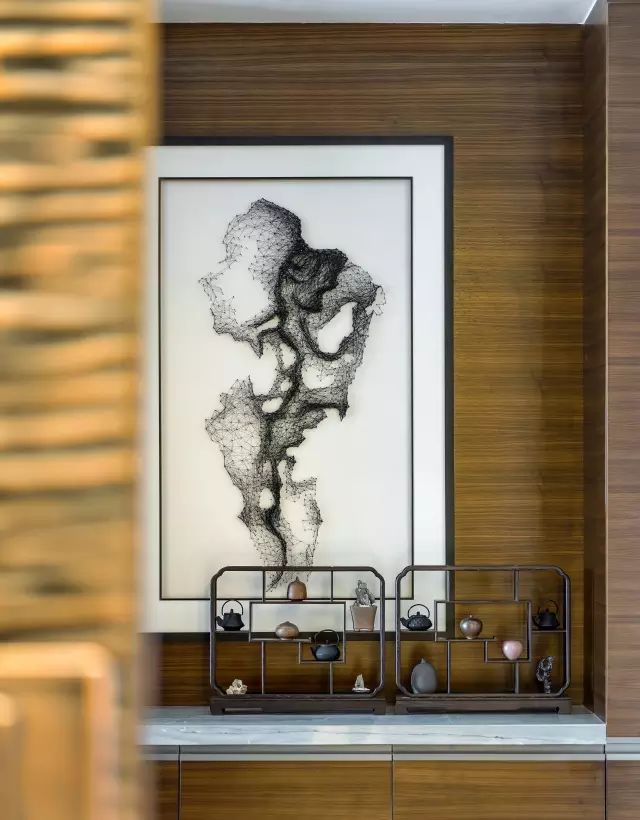 “人文藝術(shù),是空間氣質(zhì)得以成形的重要因素。在布魯盟的經(jīng)驗中,用色上是濃墨重彩或輕描淡寫,綜合了設(shè)計師對材質(zhì)、氣質(zhì)、文蘊等因素的考量,更重要的是調(diào)動觀者情緒的溫度表達(dá),在生活與藝術(shù)的聯(lián)結(jié)中,捕捉那一份不曾失落的寄望與憧憬”,邦邦將設(shè)計的立意娓娓道來。藝術(shù)品