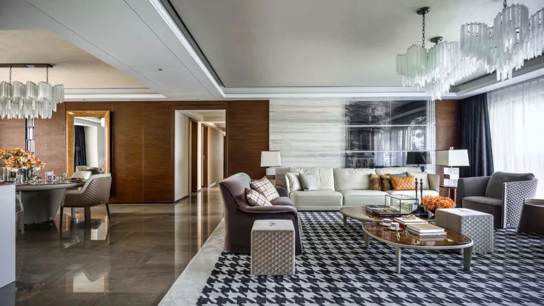 設(shè)計以當(dāng)代人文美學(xué)為基礎(chǔ),并不囿于 Bentley Home、Trussardi 和 Fendi 等品牌本身的風(fēng)格,將木的自然肌理,灑上經(jīng)典的裝飾符號,將異域人文編織其中,并形成清晰脈絡(luò),導(dǎo)入居住者的起居生活,整個風(fēng)格里舒張中有含蓄、有絢爛,有奔放,獨具風(fēng)情。