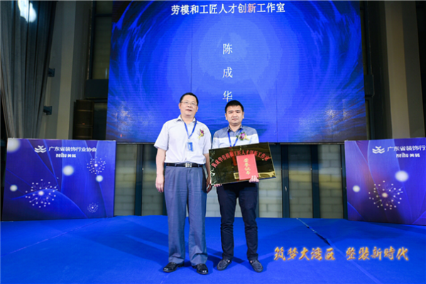 根據(jù)粵工業(yè)〔2018〕11號號“關(guān)于推薦命名2018年廣東省工業(yè)系統(tǒng)勞模和工匠人才創(chuàng)新工作室的通知”精神,廣東省工業(yè)系統(tǒng)擬推薦命名2018年勞模和工匠人才創(chuàng)新工作室20個(gè)。廣東省裝飾行業(yè)協(xié)會(huì)通過組織專家評審,報(bào)送了“陳成華創(chuàng)新工作室”參評,并通過命名,省工業(yè)工會(huì)還給予啟動(dòng)資金2萬元。