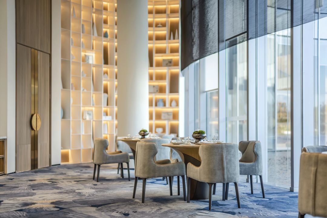 所以軟裝設(shè)計(jì)團(tuán)隊(duì)元禾大千通過(guò)抽象表現(xiàn)“云”和“水”這兩個(gè)元素,將龍里的過(guò)去與未來(lái)進(jìn)行聯(lián)系。同時(shí)設(shè)計(jì)中大量考慮了抽象的風(fēng)動(dòng)藝術(shù)裝置,恰似來(lái)自未來(lái)的信息。云、水、風(fēng),無(wú)論多么抽象的表達(dá),包裹的都是東方的內(nèi)核:龍之故里,風(fēng)生水起。