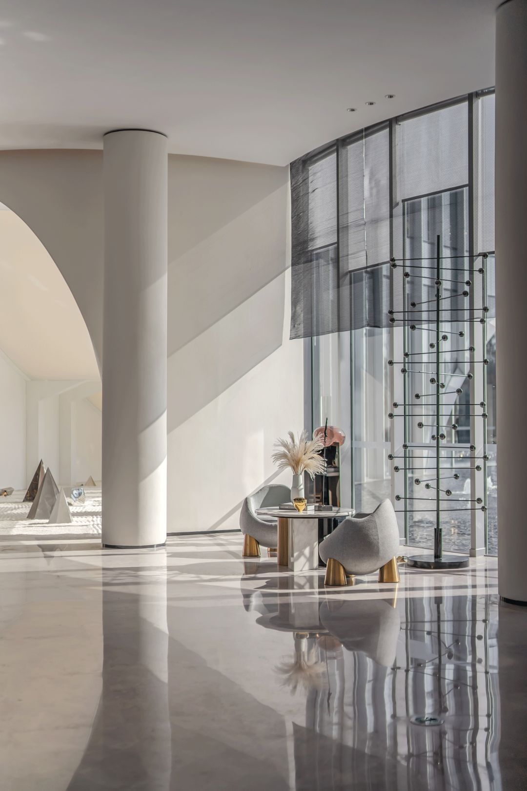 藝術(shù)品的選擇也依托于室內(nèi)大環(huán)境,且以靈動(dòng),柔美,輕盈的形態(tài)強(qiáng)化,烘托這個(gè)空間的氛圍,強(qiáng)化視覺(jué)中心。