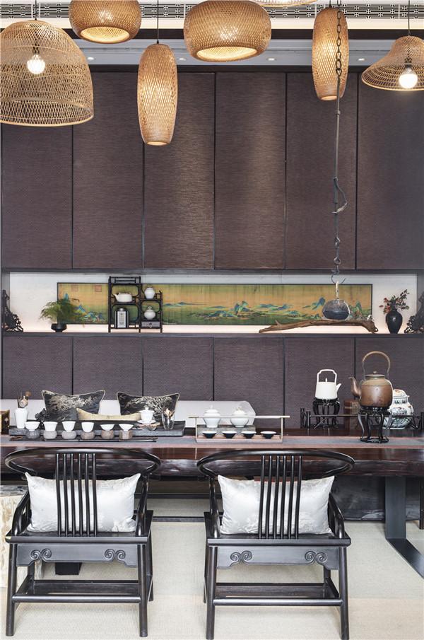 “承襲人文之間,創(chuàng)新意想之余”,創(chuàng)時(shí)空在設(shè)計(jì)中,鋪展傳統(tǒng)木雕的古典韻味,融注書畫的意趣情致,國學(xué)書院的翰墨書香與文人雅士的生活場(chǎng)景交疊、相合,營造一個(gè)詩茶交游、乘興盡致的高雅中式空間,構(gòu)就文蘊(yùn)綿長(zhǎng)的精神棲居地。