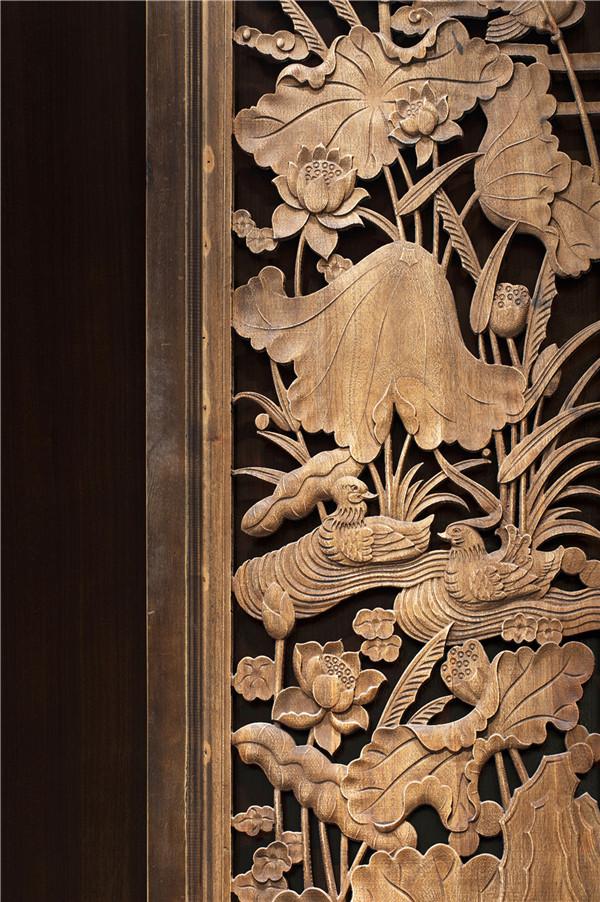 洽談區(qū)的設(shè)計(jì)根植姑蘇文脈,設(shè)計(jì)師將當(dāng)?shù)毓耪拇皺舭徇M(jìn)空間化作墻面飾物畫。精刻細(xì)鏤的木雕以立體的構(gòu)圖、樸拙的色彩,演繹“夏荷熏風(fēng)、鯉寄閑情、書劍風(fēng)流”的生動(dòng)意境,傳達(dá)渾然天成、別具一格且安閑自在的視覺體驗(yàn)。
